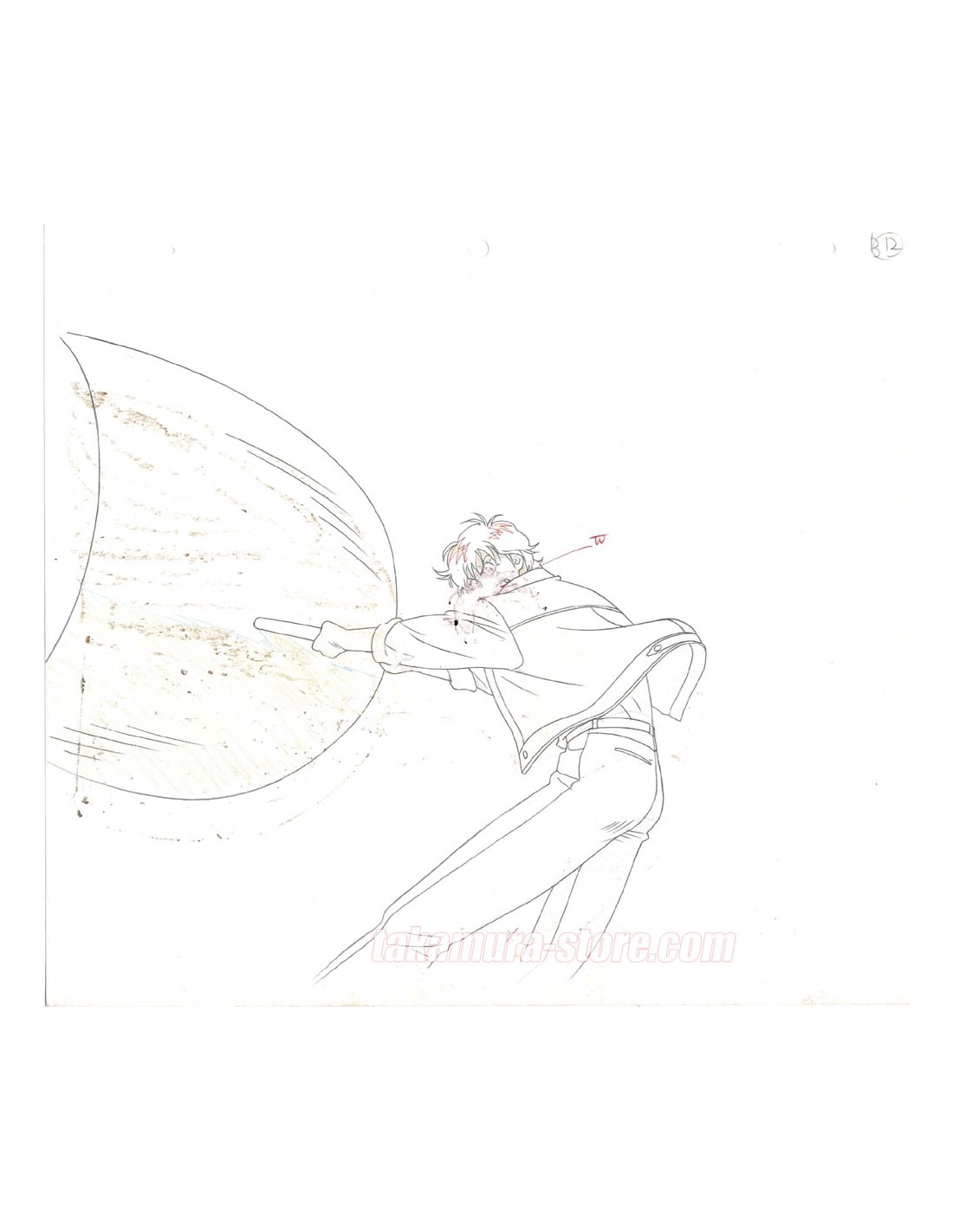 Original anime cel unstuck to the sketch.
