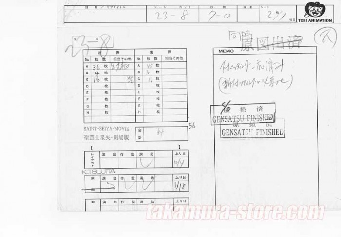 accompagné d'une photocopie du time shart montrant que le responsable genga était Araki Pro.